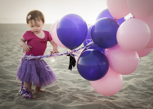 - Thank you so much Judges! What an honor, especially considering the incredible company I am in. My name is Jon Wolfson. This photo was taken in Marina Del Rey, Ca. on my daughter's first birthday. We'd planned a celebration for her on the beach, and it turned out to be a misty cloudy day. She certainly was no less happy without the sun. Also, it is my favorite weather. She was so fascinated by the balloons, she just kept wrapping herself up in them and keeping them with her wherever she went. I used a Nikon D90 with a 16-85 Nikkor. This was actually a longer shot, which I cropped - and lost a little sharpness in doing so. But I loved the picture so much I didn't let it bother me. I processed in Photoshop, added some color saturation to the shirt, tutu and balloons. A little vignette and a touch of mood from OnOne Photosuite.