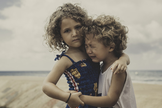 - This is a special moment of two little children. There are strong and real emotions in it. The elder girl looks straight into the camera with a brave and protective look on her face. She wants to show everyone how much she cares. I really love it!!