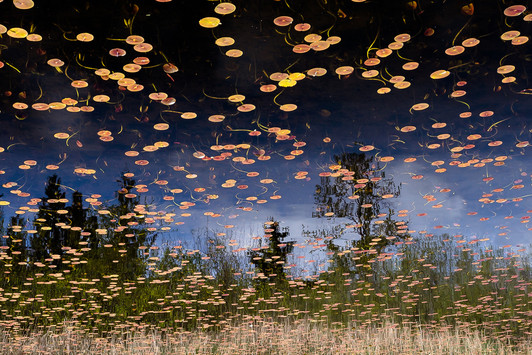 - Thanks for the Mark of Excellence award! This is actually a photo of lily pads on Phantom Lake in Washington. I was able to capture a clear reflection of the trees and decided the flip the image upside down to show the lily pads as if they were floating in space.