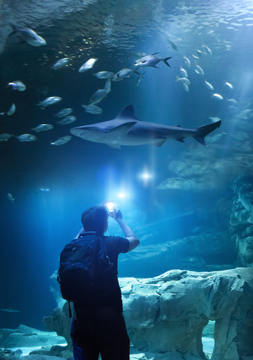 - If we pretend that we don't know there is thick glass between the photographer in the image and the shark and the fish, this becomes a surreal picture. He could be standing on the bottom of the ocean with his iPhone. And even though we know there is glass, it is still a very well composed image with great light and colors. Well done.