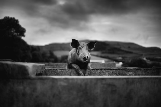 - A portrait of a pig, or simply a photo from another day at the farm. This is cute, has impactful personality and humor. Nice tones and good definition of space. Very well done.