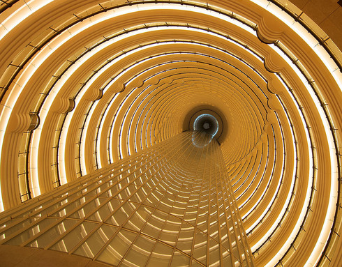 - Thank you for your votes and congrats to the winner! The picture shows the interior of the Grand Hyatt Hotel in Shanghai, looking up about 30 floors. It was taken with a Nikon D300 and a Tokina 11-16mm @ 11mm. Hans Georg Fischer/Germany