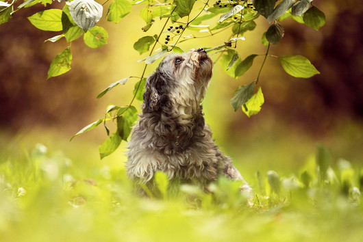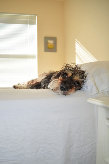 - setting aside my bias for this absolutely adorable scruffy, this image plays wonderfully with simple shapes and angles that keeps the viewer moving through the image ... the corner of the nightstand, the light from the window on the wall. the white balance and tones are lovely. wonderfully done. ~ illona