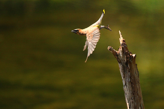 - The extreme pose of this waxwing shows how much effort is needed to get airborne. A difficult shot to take.