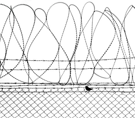 - A wonderful abstract silhouette in which the oblivious sparrow perches innocently among the sinister wires.