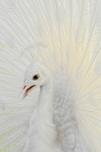 - Photos of displaying peacocks are commonplace, but this delicate, high-key portrait of a white bird provides an effective alternative.