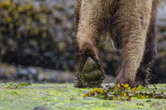 - Once again a lovely low angle for this shot showing us so little of the bear yet so much about its habitat and wandering lifestyle. The short depth of field makes the picture strong, drawing our attention to that well placed bare-bear foot and highlighting the drops of rain. It is a great shot and a nice fresh approach to this theme.