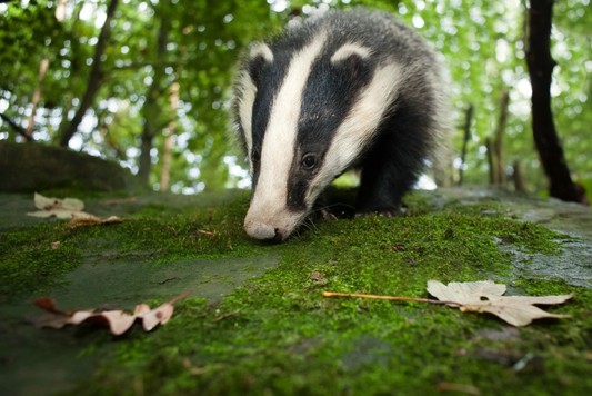 - A rare shot of badger in daylight, a ground level artistic composition and a lovely wild atmosphere make this photograph. I suspect this is taken with a remote camera; such a wide angled and close range shot is very original and pretty rare. Great use of space, badger is boldly placed high in the picture, the leaves and the mossy foreground bring a lovely balance. You have researched your subject well and planned it shrewdly rewarding yourself with this fabulous result. Great work, well done !