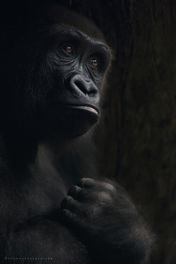 - This is a stunning (though very sad) portrait. The low angle, the framing, the dark and the light. You have managed this so well, both the photo and its developing. The absolute grief and despair you have captured in this gorilla’s expression must suggest captivity and make us question (once again) the merits of keeping such intelligent species so cruelly “insideâ€.