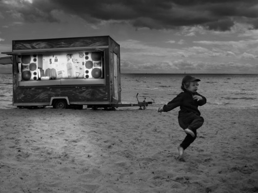 - <p>A dark and a bit mysterious image. I like the mood of this black and white shot. The light situation is really special.</p> <p>Is this boy running away because he is scared or does he dance? I don´t know but it looks interesting to me.</p>