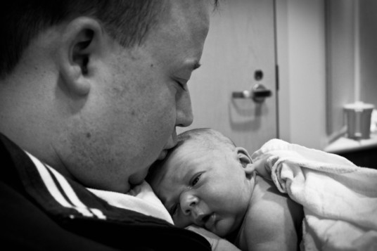 - Thank you for your kind remarks. This was taken with a canon rebel. My Son holding his first born son after his birth. The love between 2 people who have just met was so evident to me. The feeling of peace and security on the baby's face was an incredible shot for me to get..