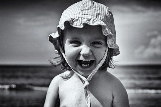 - <p>This is a great example of a great black and white portrait of a child! You captured a honest and special moment.</p> <p>The girl is in focus and the blurry background of the sea...... a beautiful image!</p>