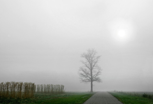 - Nice country scene taken in foggy monotone conditions. The road leads a strong line to the tree and the sun through the fog completes the game of shapes. I expect this was a spontaneous shot… Well spotted, composed and executed. Well done, one of my favourites.