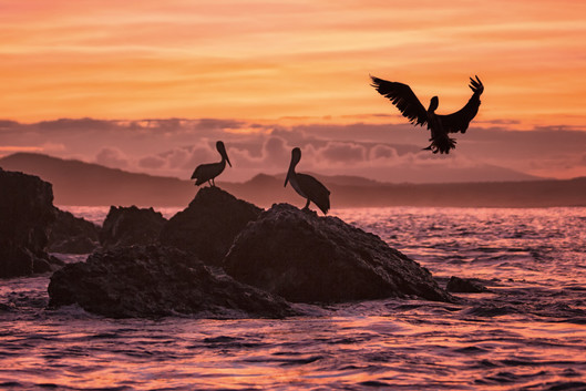 - Pelicans at Sunset, Galapagos Islands Canon 5D Mark III EF 70-200 mm f/2.8L IS USM 1/500, f/2.8, ISO 400