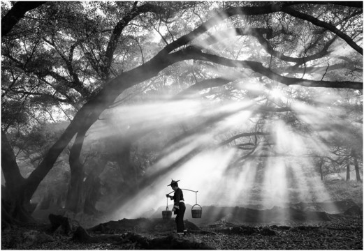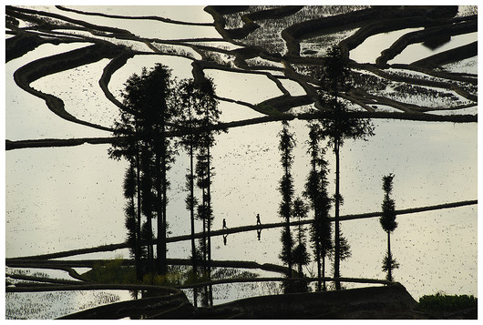 - This photo was taken from Yuanyang Rice Terrace in Yunnan China. This photo was not edited and was taken while waiting for sunset. I composed and waited for the farmers to walk in between the trees before releasing the shutter. I f you look closely you can see the reflection of the blue sky and some green scrubs on the left bottom corner of the trees. This photo was taken using Sony A7 with Leica 70-180mm Apo+ 2X Apo converter using the magnifier focusing of the camera Tony Mok Singapore [email protected]
