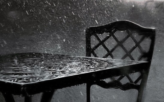 - Thank you for the votes. My name is Kevin from Central NY. I took this photo on my Honeymoon. I loved the wrought iron table and chair on our terrace in Pompano Beach, Florida. It rained a lot, and I decided to capture just how hard it was raining with this picture.
