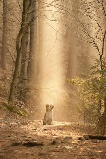 - the framing, lighting and tones in this image are magical ... the framing of the branches around the spaniel, the soft light and warm tones. i wonder if the post work applied to the light falling down on the dog could be a little less, so that the image has less of a photo-shopped look? the amount of light directly over the dog is a wee bit distracting from the dog. but otherwise a very lovely image. nicely done. ~ illona