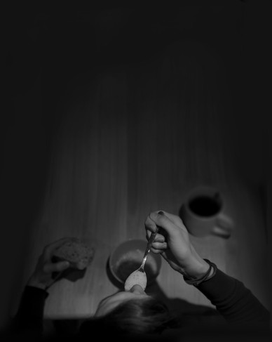 - Great shot of food as the centre of attraction. We all love a dig into this kind of French picnic. The moving hands and bare feet bring a nice homely friend's atmosphere. Well done.