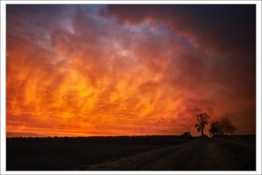 - Thank You for voting. This picture of the burning sky has been taken in Germany near the city Würzburg at dawn of 31th december last year. I used a EOS 6D with Tamron 2.8 24-70 at 24mm 1/4s f16 ISO 100 on a tripod.
