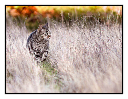 - this fun capture is certainly not an easy one with all of the grass competing for focus, and - no doubt - the cat moving towards the photographer. nicely done. ~illona