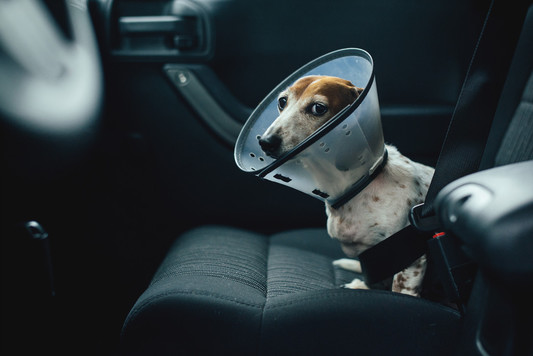 - what an awesome image. wonderful tones and depth of shadows, and of course, the expression of the coned dog is priceless. wonderfully captured and processed. ~ illona