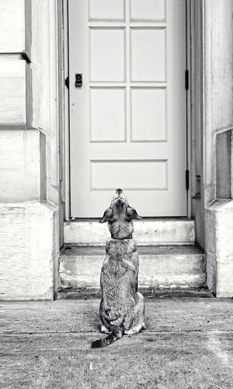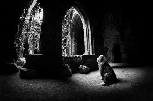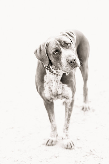 - this high key image is an instant fave. the conversion allows the subject to stand out, and the direct eye-contact from the dog and the tilted head engages the viewer. well done ~ illona