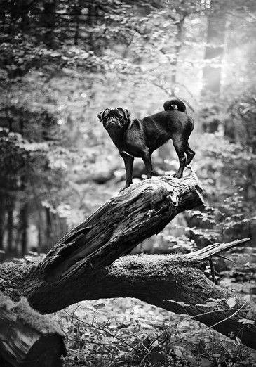 - what a fabulous image ... the strong pose of this pug and the framing of this image are nicely done, as is the conversion to black-and-white, allowing the dog to stand out in the pool of light. nicely done. ~ illona
