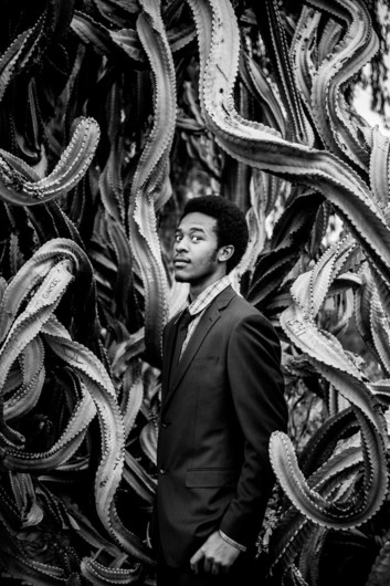 - Thank you. I teach High School, this is one of my yearbook editors from last year, I shot the prom photos for my yearbook kids. I also have my own company for photography. I entered the contest hoping to win the camera for the High School to use (I teach Photography and funds are very limited). I used my nikon d700 at Balboa Park in the Cactus Garden for this shot. This students nick name was "Tropic Thunder," haha...since he looks so much like Robert Downey did in the movie.