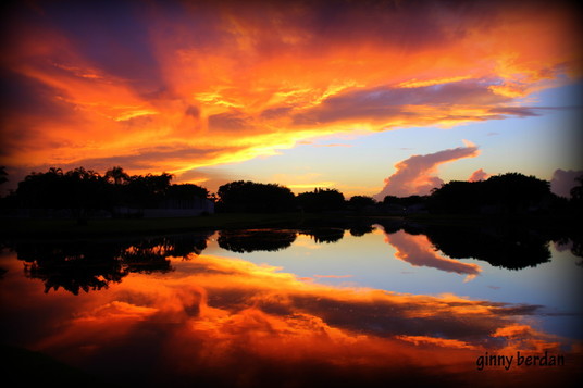 - I'm thrilled to have won the Mark of Excellence Award with this picture! I took this in my backyard in Boynton Beach, Florida with my Canon Rebel T3i. This picture was taken just after a very bad storm and the sky started clearing as the sun was setting and this was the result! The reflection off the lake really gave this shot the WOW factor. Happy shooting everyone! Ginny Berdan ~ Boynton Beach, Florida