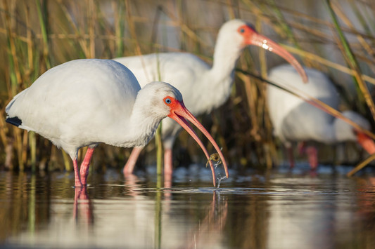 - The waterside vegetation and additional birds in the background give this shot of a feeding ibis an authentic, natural feel