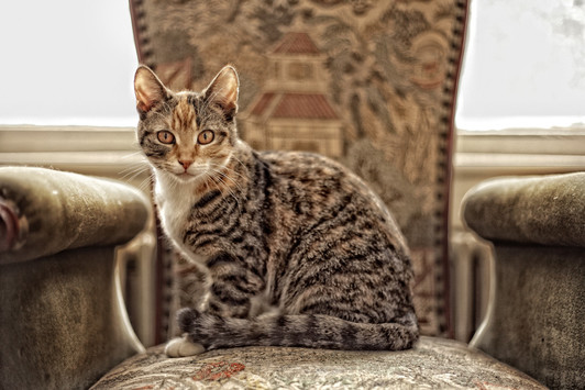 - the soft, blended tones of this image are exquisite ... how the cat seems one with this luxurious chair, his fixed stare, the wrap of his tail ... all make for a lovely image. nicely done. ~ illona