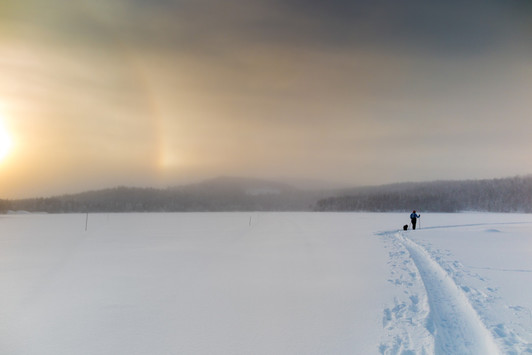 - Thanks, I´m honored! This photo was taken while cross-country skiing past a frozen lake covered with deep snow, in the woods just outside Oslo, Norway. As a matter of fact it´s just about 15 km (9 miles) in distance from the location to the centre of Oslo city. In the background the atmospheric phenomena called Sundog can be seen to the right of the sun. Canon G1X Mark II. Post-processed in Lightroom. Svein Nordrum, Oslo.