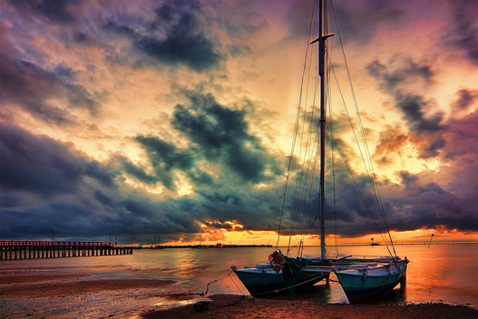 - I am Steven Teo, thank you for the votes. This was shot at Serasa Beach, Brunei early in the morning as the sun was just about hitting the horizon. I used the Sony a850 with the Tamron 24-70mm lens. It was a blend of three images.