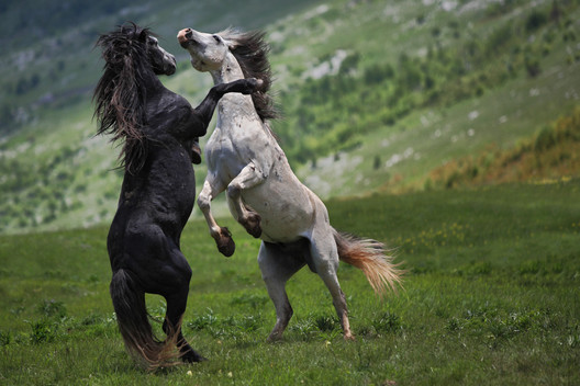 - Wild stallions, black and grey. Great shot of these magnificent and now rare american animals.