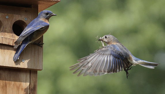 - I love taking pictures of birds, particularly bluebirds. I took this a few weeks ago as these 2 were building their nest. The female is now incubating the eggs. They should start hatching next week! I used a Sony A6000 with 70-200 lens. Appreciate the votes. Audrey