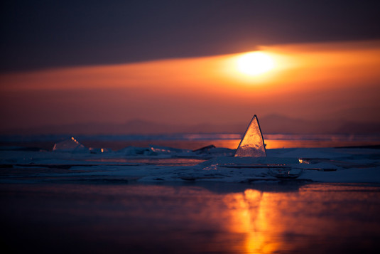 - Hi, I'm Evgeny Dubinchuk - landscape, nature and travel photographer from Russian Federation. On the photo you can see a triangular ice hummock shining in sunlight of the sunset. The photo was taken on frozen lake Baikal in winter of 2015. I used Canon 5d2 with Canon 70-200 f/2.8L IS lens