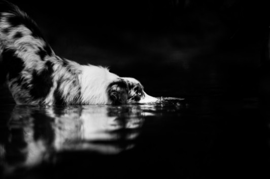 - what an immediately standout image ... the framing is strong and simple, and the tones are exquisite. the soft reflection of the sky in the shallow water, as well as the dog's, and the gentle ripples around him invite us into this simple space. nicely done. my only wish would be that there be a little light on this dog's face so we can enjoy his expression, but otherwise a wonderful image. ~ illona