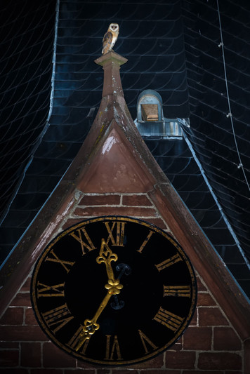 - This night-time shot of a clock tower would be interesting even without the owl, but the counter-balancing focal points of owl and clock face make it doubly so