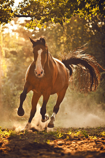 - what a stunning image and beautiful light. the low sun catching in the horse's tail and whiskers, the easy movement captured in this image, the swing of the head, the swish of the tail and the suggested stride in the forward shoulder draw us into this image. absolutely stunning subject and light. beautifully captured and managed in post. an instant fave. ~ illona