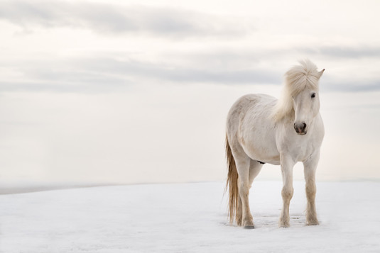 - Thank you so much for selecting my image! This was taken in May 2015 in Iceland. There was a large group of very friendly horses of every color that came right up to the fence to greet us, but this white horse stayed further back in the field in the lingering snow against the gray evening sky. Shot with a Canon EOS 5D Mark III and a 24-105 mm lens. Chellie Hyre, Virginia, USA.
