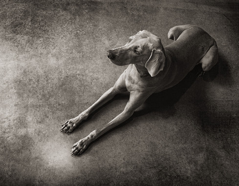 - this image is immediately captivating in its simplicity, bold shadows, and film-like quality. with its monotone treatment the viewer's eye wanders easily along the lines of light and across the details, from the dog's ears, whiskers, nails, and even the scratches on the concrete floor. nicely done. ~ illona