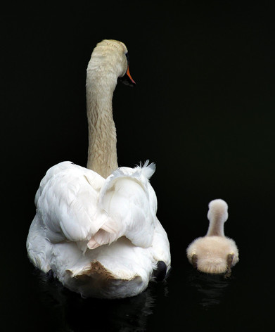 - Photos of the backs of birds' heads don't normally appeal, but the outline of this swan leading its cygnet into the blackness is very effective