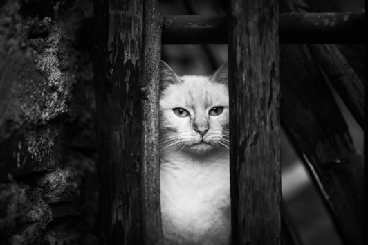 - what a fabulous and immediately compelling image. the story-telling quality of this photo adds to its strength. the choice to convert to (shoot in) black and white keeps the elements simple. the distant buildings directly behind the cat, with the strong horizontal lines, are a little distracting, and if there was a way to edit these 'harsher' buildings out, i would advise that. but it is still a magical and unique image. nicely done! ~ illona