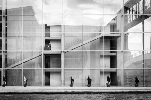 - Taking a break in the government district of Berlin, I noticed a group of segway-drivers approaching a building with kind of a grid in the facade. I hurried up and tried to capture the scene. The fact that the segway-drivers left out one space which the man on the stairs exactly filled in - pure luck. You have to try in order to have the chance to be lucky. Name of the picture Tic-Tac-Toe Location Government District of Berlin Paul-Löbe-Haus seen from the Marie-Elisabeth-Lüders-Haus, Schiffbauerdamm, 10117 Berlin, Germany Camera Model Olympus OM-D E-M10 Lens Panasonic LUMIX G 20mm / F1.7 Exposure f/4.0, 1/60s, focal length 20mm, ISO 200 Post Processing I converted the picture to black&white, straightened the lines a bit and increased the contrast Photographer Hans-Jörg Aleff