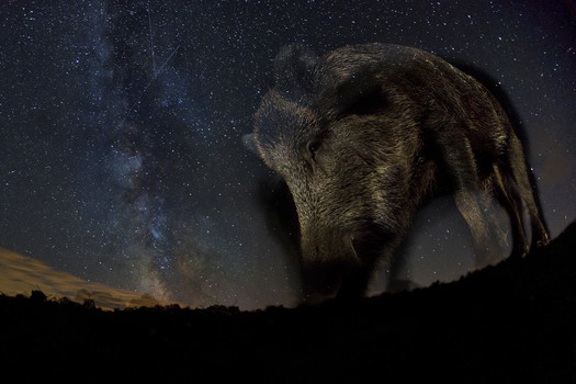 - Here is a remarkable shot, and it looks like we just got our first winner of this competition taken with a remote camera (correct me if I am wrong). So, a very cleverly planned photograph, the Milky Way isn’t there by accident, but a very nicely taken one too, a mix of long exposure and flash give this boar detail in the night, showing off its fabulous fur coat and that dark eye with which we connect immediately. I suspect this wasn’t a first attempt at this so all of that work has paid off, you have got yourself a rare photo, nothing less than a wild boar foraging at night photo. Congratulations, clever shot.
