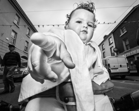 - Graham Martin, Dublin. I shot this scene with a Fuji X100 and converted it to b&w in Lightroom 4. It was taken in a small city called Nova Serrana in the Brazilian state of Minas Gerais. I liked how the girl on the left was acting tough (in a 'Frozen' t-shirt) and almost mirroring the body language of her mother behind, while the other girl shared a Pastel with her mother. Thank you for your consideration and selection for this mark of excellence.