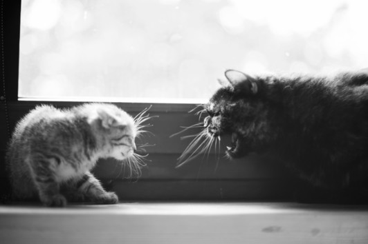 - this is an utterly wonderful and memorable image ... an absolute winner. the expression and action captured here are priceless. unfortunately, i think it's the action with a slower shutter speed that has caused the blur/softness on the kitten which takes away from some of its strength. but the true impact of this image is the expression - blurred or not. nicely done. ~ illona