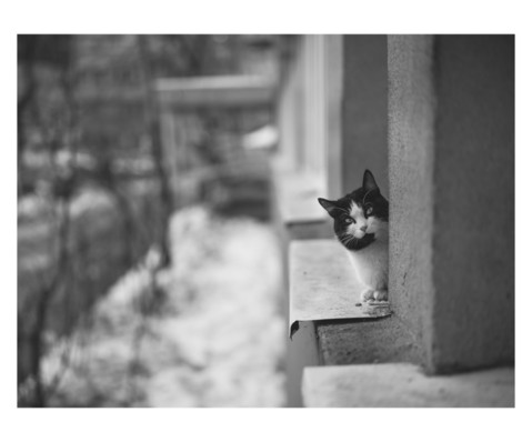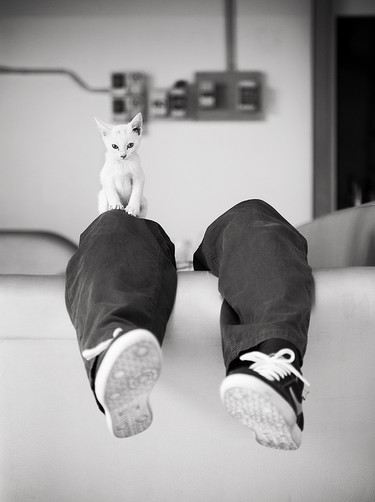 - this image's strength is two-fold ... not only is it a strong black-and-white image, with clean conversion, and wonderful contrast, but this is also an image with great feeling and sentiment. anyone who is owned by a cat is more than familiar with this viewpoint as it is something seen every day. very nicely captured and handled in post. ~ illona