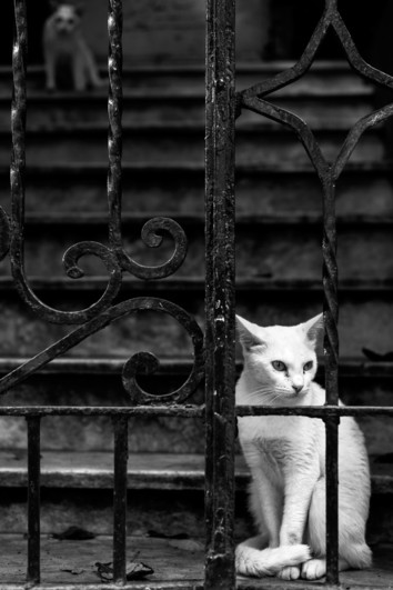 - Thank you so much, Illona. I am truly happy to see people are actually being drawn to this photograph for the same reason that made me stop to take it. It was taken in a suburb near downtown Rio, I was at a friends house and had gone out to grab a cup of coffee. On my way to the cafe I saw two white cats sitting at the stairway, I always stop to pet cats. And I started seeing how the contrast between the cats and the dark stairs of this abandoned house was playing out in conjunction with the framing rusty iron gates and concrete textures. I didn't think twice before running back to grab my camera and hope the cats were still there and they were! I was really happy with the image taken. I used a Nikon D3100 with a 35mm f/1.8 lens and processed using Adobe Camera Raw. Rodrigo Oliveira.