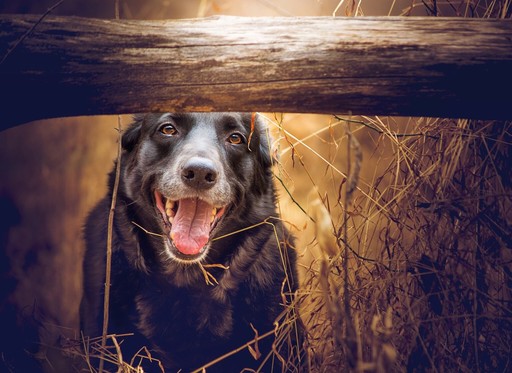 - what a great image. the shallow depth of field provides clear, sharp focus on the subject, yet there is so much texture for our eye to wander through, but always come back to the sweet dog's face. nicely done. beautiful tones and shadows, and great white balance. ~ illona